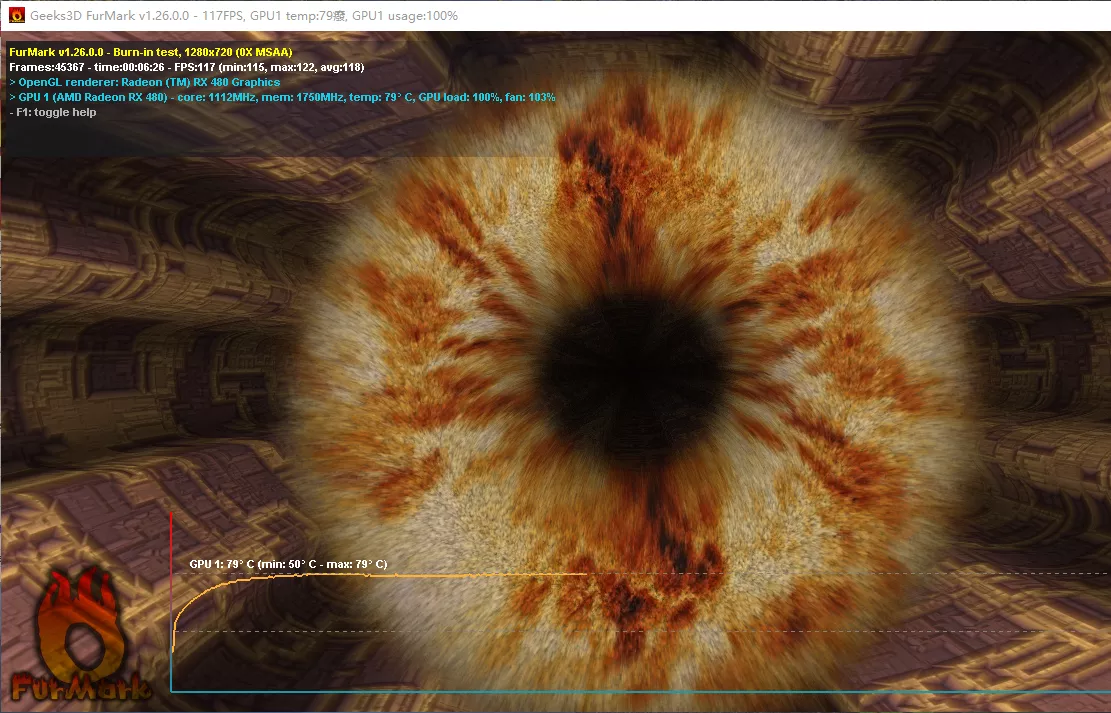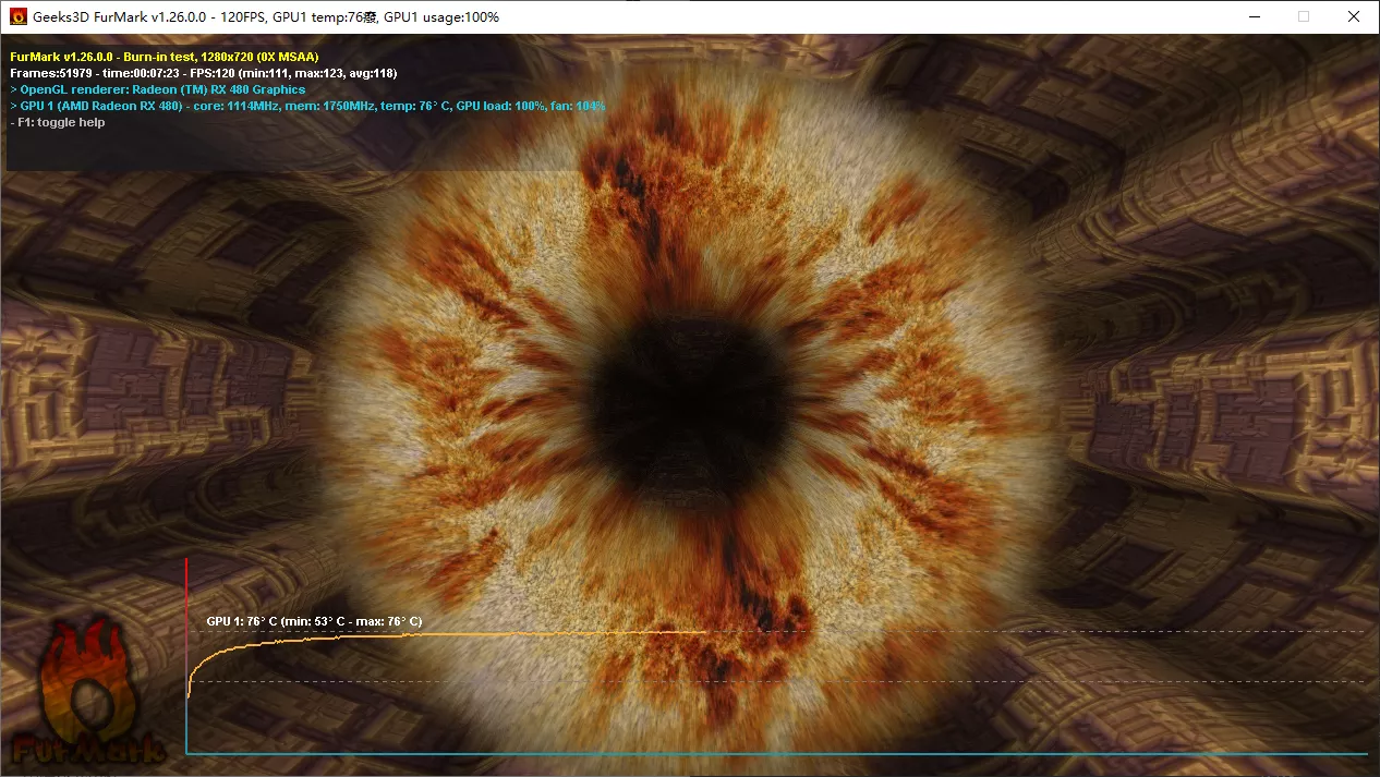 结果这块RX484温度表现更为惊人, 正常游戏中就可以跑到780ti都难以企及的80度以上