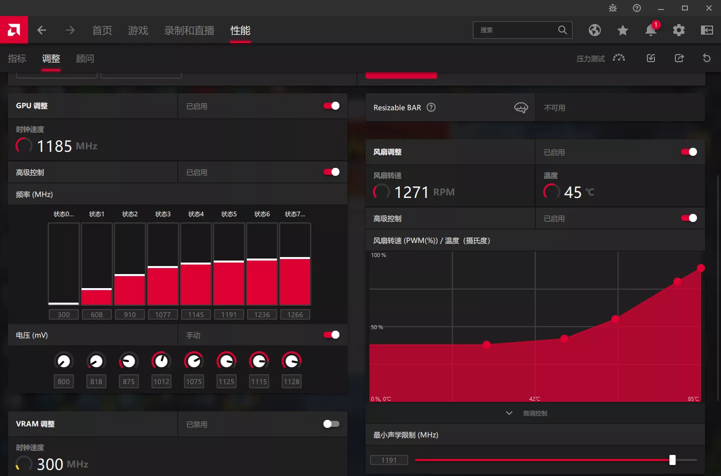 但是如果跳到1100mV显卡终于绷不住了,那你就成功地把握住了显卡的底线1101mV(大雾)