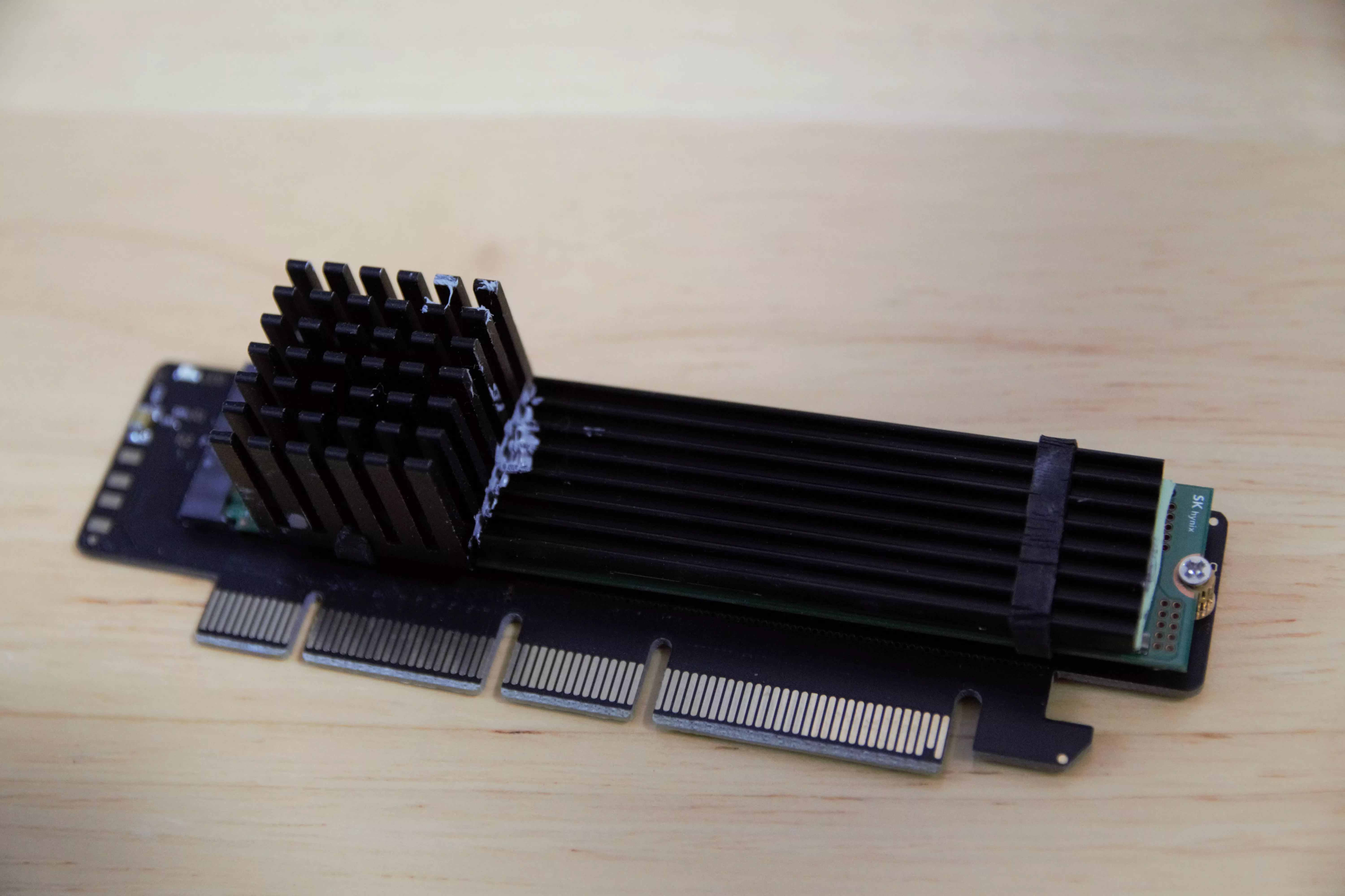 只能用pcie转接卡, 并且紧贴显卡这一大热源, 而这个马牌主控本身就有惊人的发热量(裸奔情况下温度能破90)